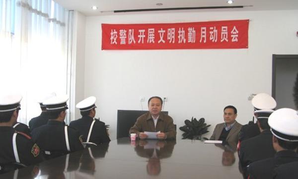 3月29日,保卫处召开校警文明执勤月动员会。副校长杨军出席会议并讲话,保安公司负责人及校警队员40余人参加会议。