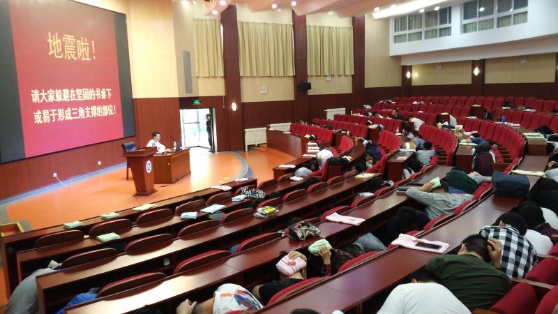 培训活动内容共分两个环节,首先邀请北京市枫叶防火中心侯敬周老师对地震和火灾的危害、疏散逃生知识和自救互救技能进行了专业培训,讲得很精彩、很具体、很实用,大家听得非常认真。随后模拟进行了地震逃生疏散应急演练和因地震造成的次生火灾扑救演练。