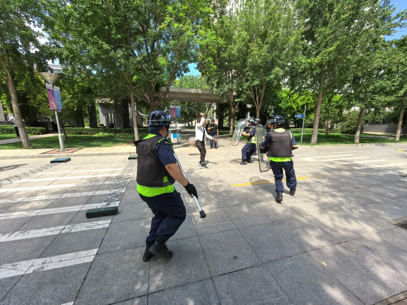 为提升应对校园暴力事件能力,保障师生安全,校安全稳定工作部(处)治安中心7月6日组织校警队成功开展防车辆冲撞及持械(刀斧)袭击应急处置实战演练。